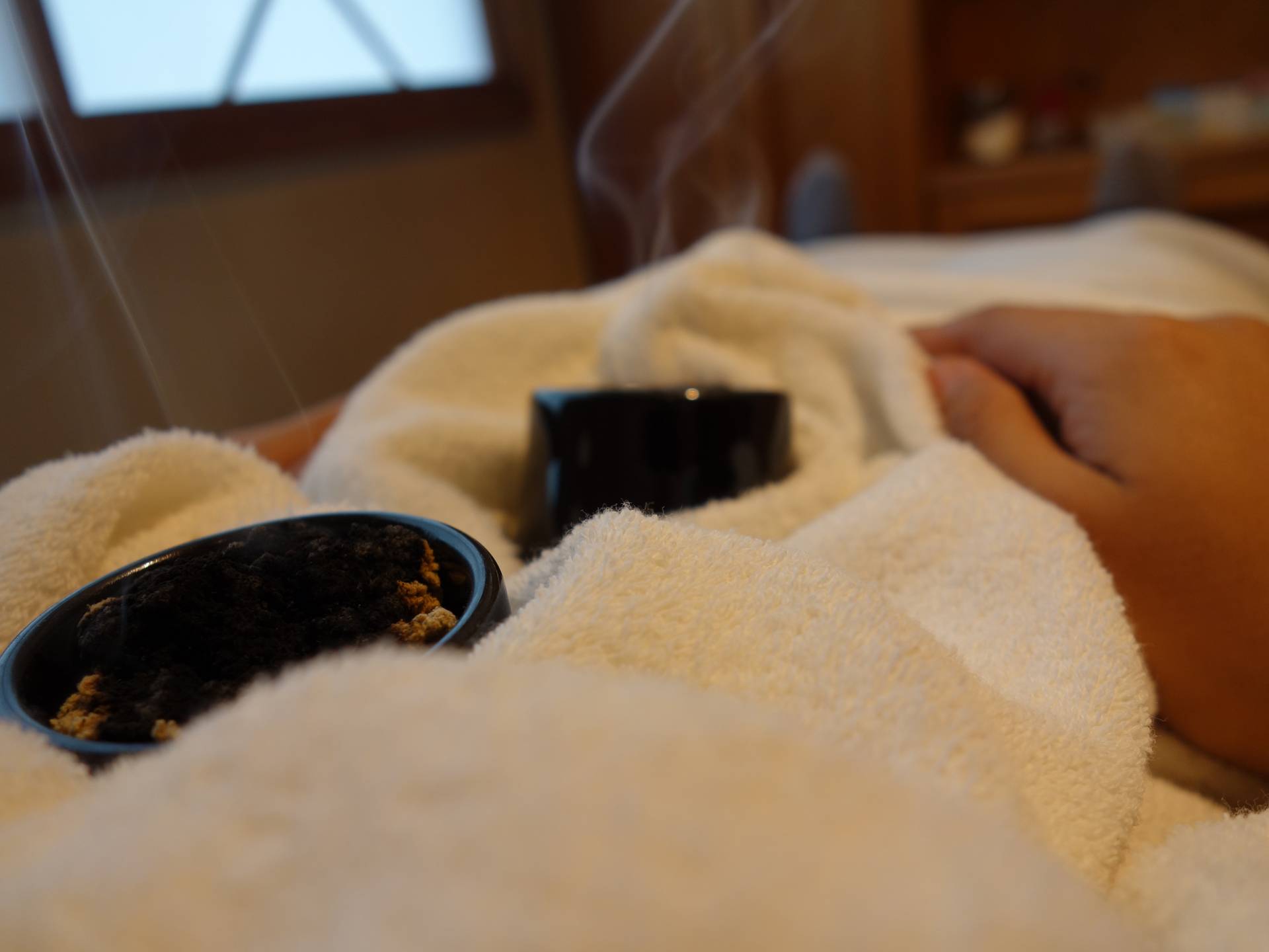 使用するおきゅうはお椀の中にモグサを詰めたおわん灸。