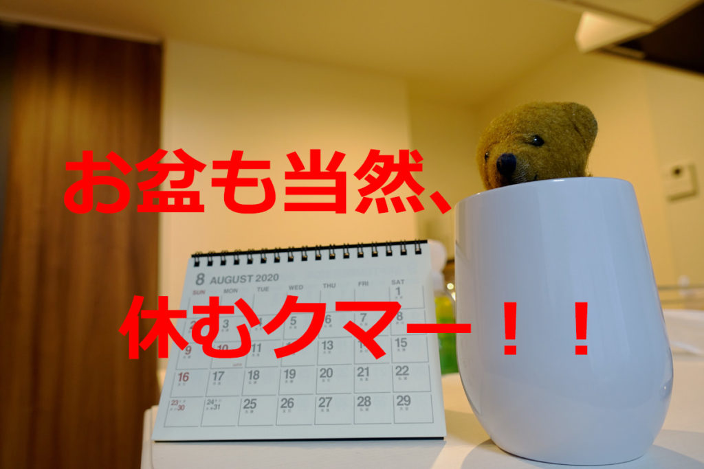 今年は一連のコロナ騒動で例年に比べ、仕事はあまりしてないはずなのですが。。。 どうも休み癖がついたみたいで・・・ お盆も漏れなくお休み頂きますので、あしからず。。。 毎度の事ながらご迷惑をお掛けしますが、 どうぞよろしく